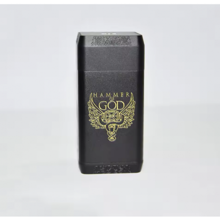 La Hammer of God V4 se distingue par son boîtier en aluminium anodisé, alliant légèreté et durabilité. Ses dimensions compactes (85,5 x 41 x 49 mm) permettent une prise en main confortable tout en offrant une compatibilité avec des atomiseurs de grande taille, jusqu'à 40 mm de diamètre.